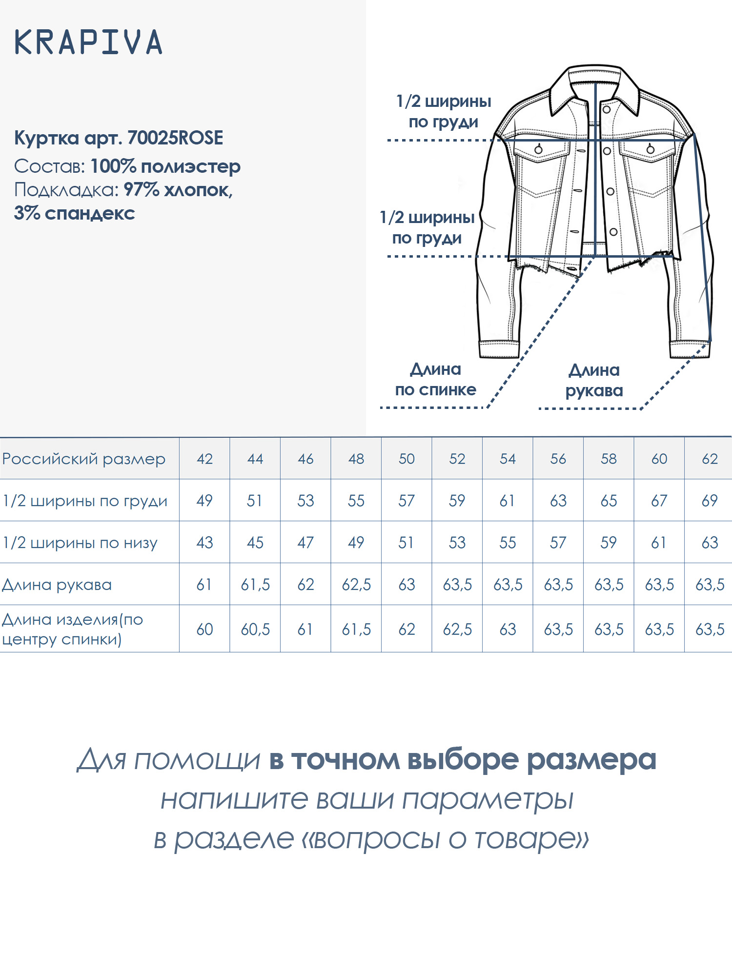 Материал верха: 100% полиэстер Подкладка: 97% хлопок, 3% спандес